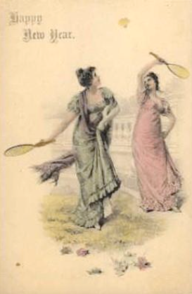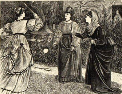 Título: Battledore and Shuttlecock. Three women playing this racket game. 1871. Published in Harper's Weekly. Grabado sobre madera.