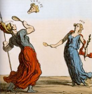 La partie de volant (Das federballspiel) in le Charivari. 31 März 1869. Honoré Daumier.