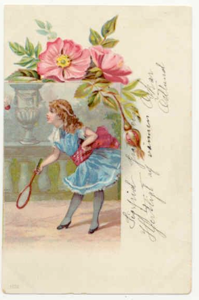 Ilustrado por Kate Greenaway’s. Published by Frederick Warne & Co., Ltd. 1900. Página dedicada al Battledore and shuttlecock.
