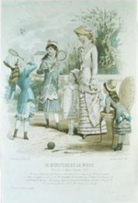 Título: Battledore and Shuttlecock. Three women playing this racket game. 1871. Published in Harper's Weekly. Grabado sobre Madera.