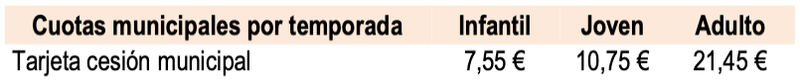 La Tarjeta Municipal de temporada es precisa para los jugadores que participan en las actividades en el CDM de Hortaleza y se aplica a los jugadores con licencia federada.