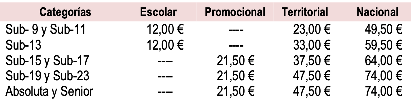 Las cuotas que se indican sonlas aprobadas por la Asamblea General e la FEMBAD el 16 de diciembre de 2023, para la temporada 2024.