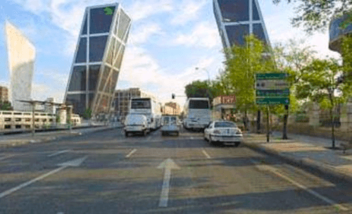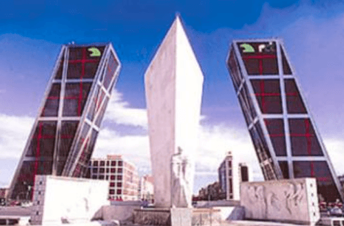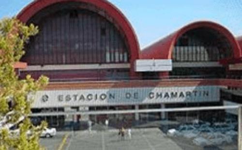 La estación ferroviaria de Chamartín, con sus características bóvedas, están representadas en las letras C y B. La letra H y, al mismo tiempo, A y M, están formadas por las dos torres inclinadas situadas en la Plaza de Castilla.