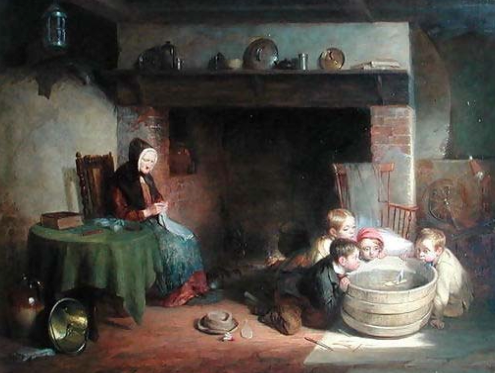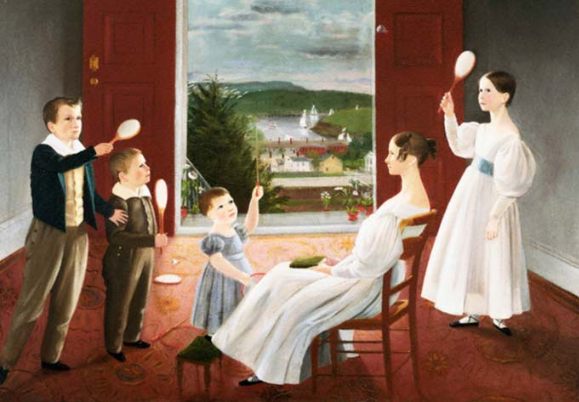 Colonial American Painting of a Family at Play.