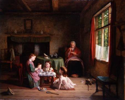 Es un pintor figurativo, con una pintura perteneciente a la época victoriana que representa la vida doméstica y la sociedad contemporánea.