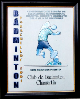 El presidente del Club, D. José Luis Hernández, recibe el premio al mejor club del año 2000, otorgado por la Federación Española de Bádminton.El Premio se entregó el día 2 de junio de 2001 en Sevilla, en la Cena de Gala que con ocasión de la Asamblea General de la Federación Española celebra en esta ciudad, durante la que se entregaron distinciones especiales a los representantes de las entidades y organismos organizadores del Campeonato Mundial de Bádminton.