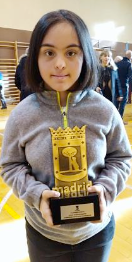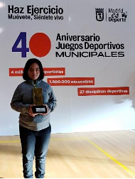 Itziar Carril, jugadora de la Escuela Municipal de Hortaleza, recogió el premio entregado al Club de Bádminton Chamartín.
