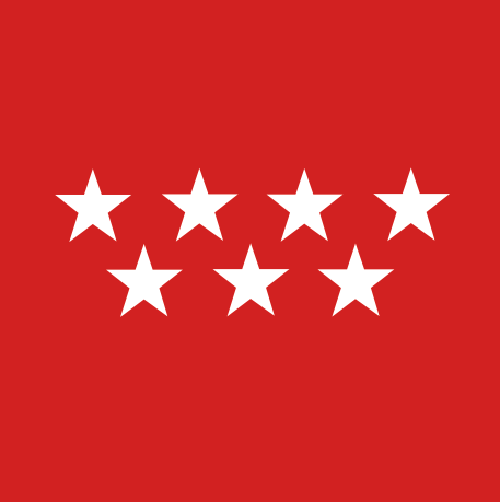 Las siete estrellas de cinco puntas de la bandera de la Comunidad de Madrid, que representan la constelación de la Osa Menor, se sitúan entre las letras de la palabra Madrid.